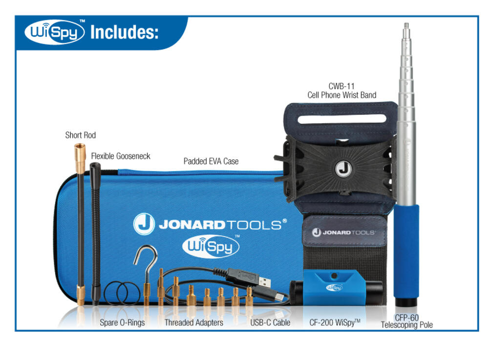 - Darmowa aplikacja i opaska na nadgarstek * Zawiera darmową, łatwą w użyciu aplikację (dostępną na systemy IOS i Android) do łączenia WiSpy™ z urządzeniem inteligentnym i sterowania kamerą oraz opaskę na nadgarstek Jonard Tools, aby mieć wolne ręce!