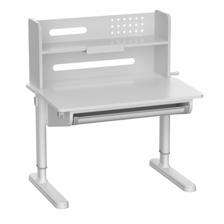 Prawidłowo dobrana wysokość biurka ma ogromny wpływ na postawę dziecka, komfort nauki oraz zdrowie kręgosłupa. Manualna regulacja wysokości za pomocą wygodnej korbki umożliwia precyzyjne dopasowanie blatu do aktualnych potrzeb użytkownika – bez użycia narzędzi i bez konieczności podłączania zasilania. Brak elektroniki oznacza większą trwałość, bezpieczeństwo oraz niezawodność w codziennym użytkowaniu. Pochylany blat pomaga utrzymać wygodniejszy kąt pracy podczas pisania i rysowania, a przemyślane dodatki (półka i szuflada) porządkują przestrzeń, dzięki czemu dziecko ma wszystko pod ręką.