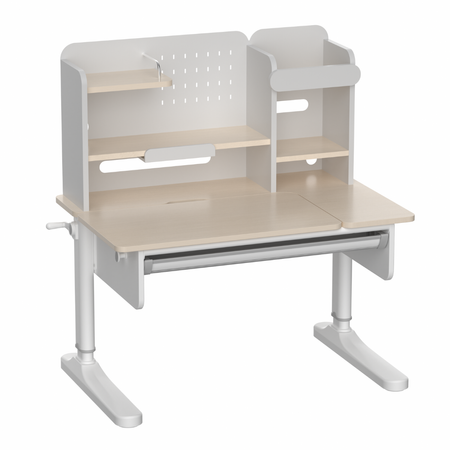 Biurko dziecięce SPEX113WW_100 – najważniejsze cechy: regulacja korbką, pochylny blat, półki i szuflada