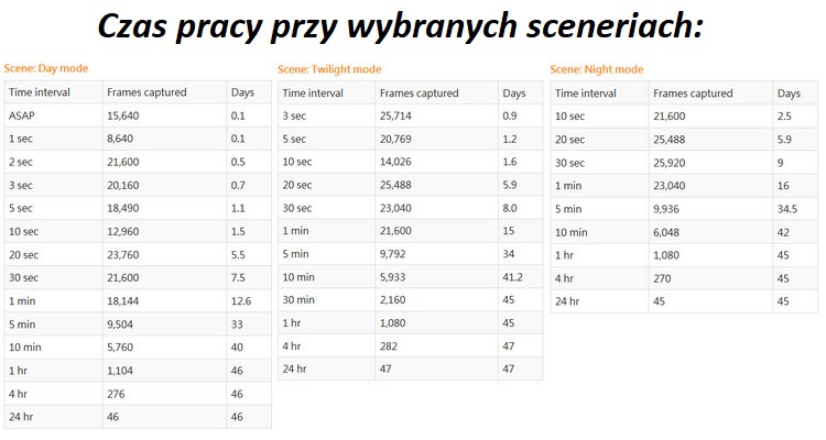 Nowością w modelu EMPOWER jest możliwość planowania nagrań. Użytkownik może tak skonfigurować kamerę, aby ta nagrywała materiał np. tylko we wtorki i czwartki w godzinach 13-17. Urządzenie będzie tę czynność powtarzać do odwołania przez użytkownika. Idealne rozwiązanie, gdy obserwujemy np. teren budowy, gdzie prace trwają w ciągu dnia, a nagrywanie obszaru w nocy nie jest konieczne. Wydłuża to zdecydowanie pracę bez konieczności wymiany baterii.