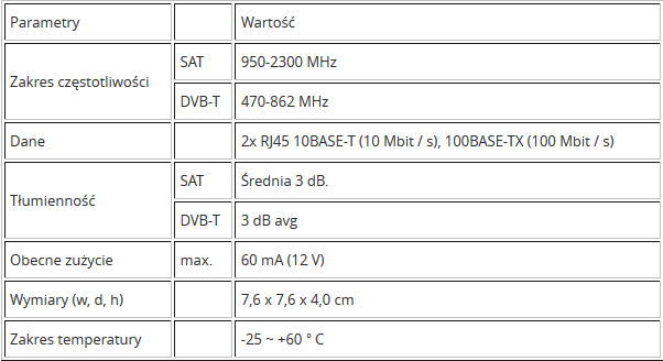 Wyjściowy sygnał z multiswitcha po przewodzie koncentrycznym musi zostać zakończony gniazdem, aby uzyskać dostęp do wszystkich sygnałów wyjściowych: SAT DVBT oraz LAN