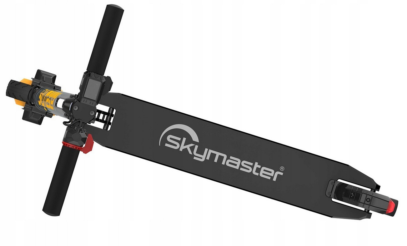 Hulajnoga Skymaster HOOLA MOONSTER pozwala na jazdę klasyczną z odepchnięciem nogą oraz przemierzanie szlaków przy pomocy silnika elektrycznego.