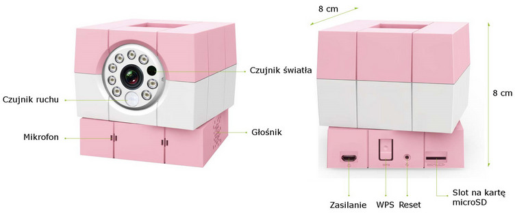 • Nowoczesna kamera wewnętrzna z zapisem filmów w chmurze, z możliwością podglądu na żywo z czujnikiem ruchu i dźwięku. Obrót 360° i 8 diod IR oraz 2 mikrofony.Kolor różowy