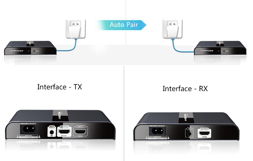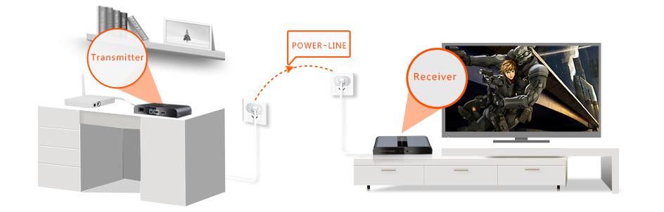 Konwenter obrazu HDMI pozwalający transmitować sygnały 1080p z dowolnego miejsca w np. domu do dowolnego miejsca w domu za pomocą istniejącego kabla linii energetycznbej do max. czterech odbiorców rozbudowując komplet o dodatkowe odbiorniki RX, co pozwala zaoszczędzić kłopotów oraz instalacji i wymany nowych przewodów. Jest to niższy koszt od alternatywny instalacji AV.