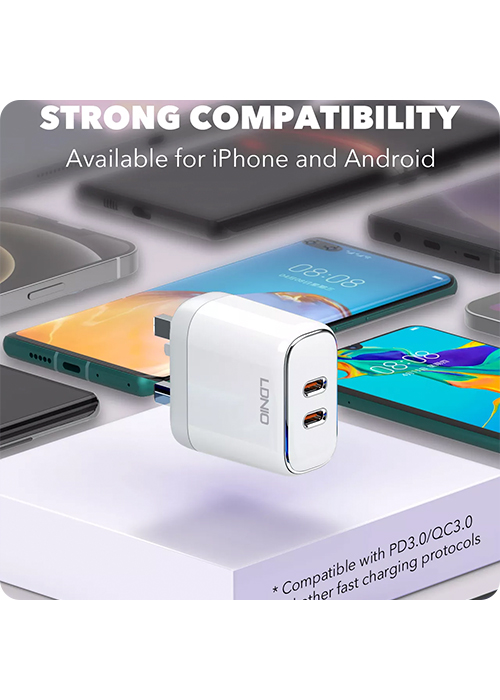 Mocna ładowarka do telefonu 2x USB-C 35W + kabel USB-C Lighting