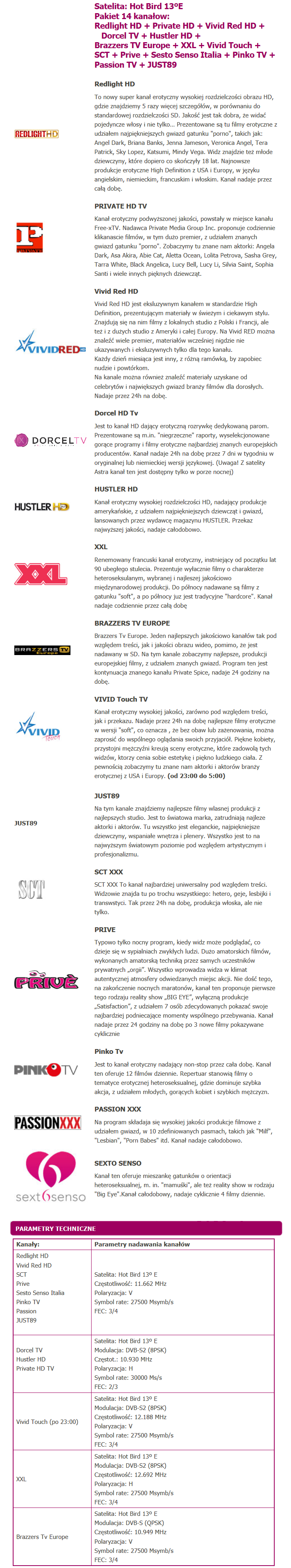 Uwaga!!! Brak Gwarancji za zmiany ilościowe nadawania kanałów,