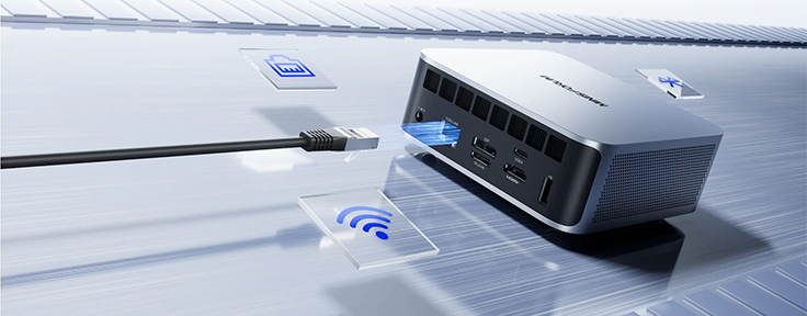 Złącze OCuLink umożliwia podłączenie zewnętrznej karty graficznej (eGPU) poprzez zgodną stację/dok. Na co dzień korzystasz z kompaktowego mini PC, a gdy wymaga tego projekt lub gra – dołączasz eGPU i zyskujesz dodatkową wydajność, bez rezygnacji z małej obudowy.