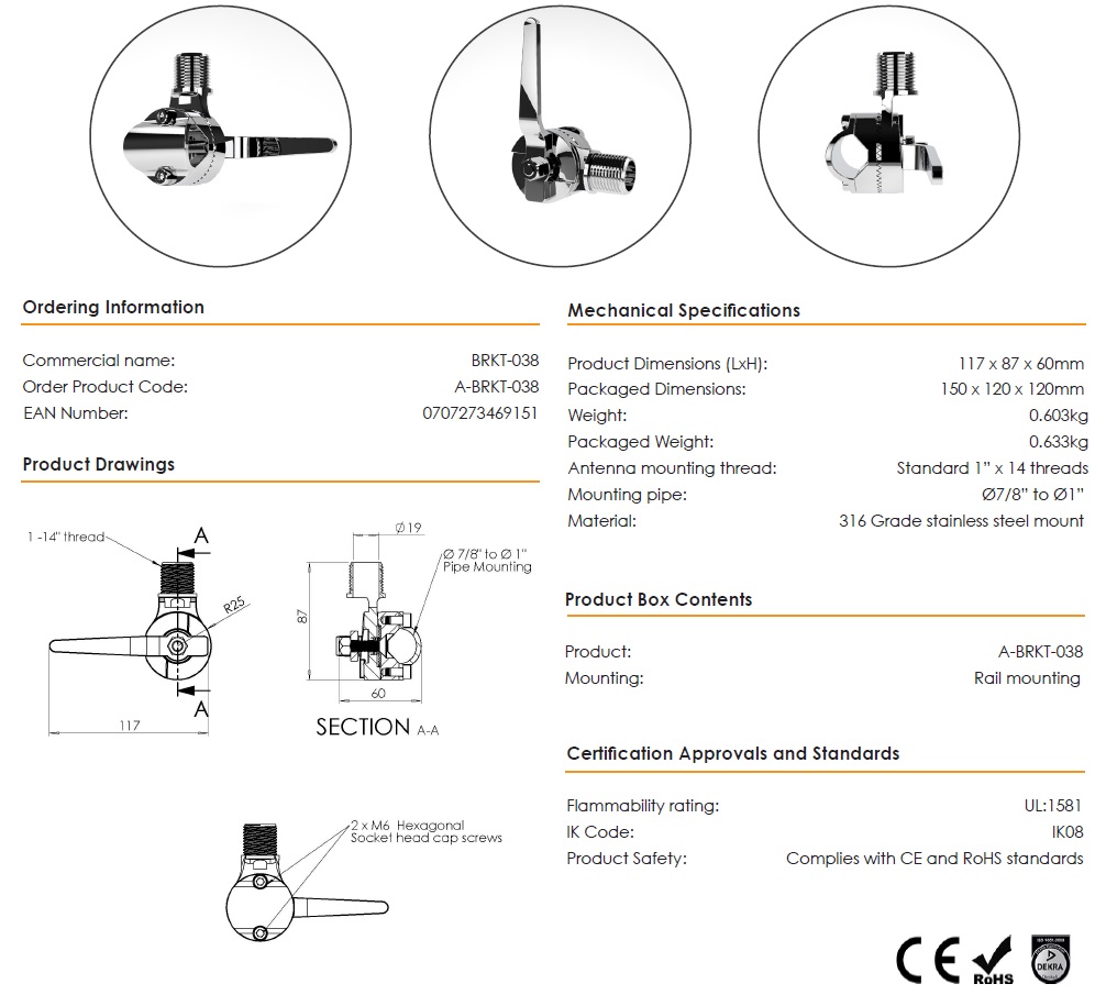 Mocowanie uchwyt morski z grzechotką BRKT-38 do anten Poynting