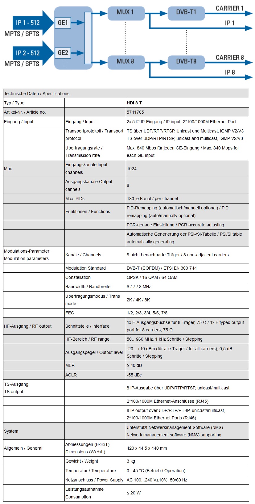 Kanały wyjściowe można dowolnie wybierać. Pojedyncze strumienie (maks. 1024) są mieszane w kanałach DVB-T.