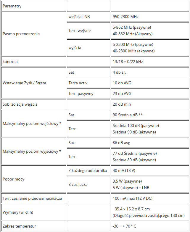 - Wszystkie multiswitche oferują tłumiki wejściowe, do wyboru aktywne / pasywne przetwarzanie