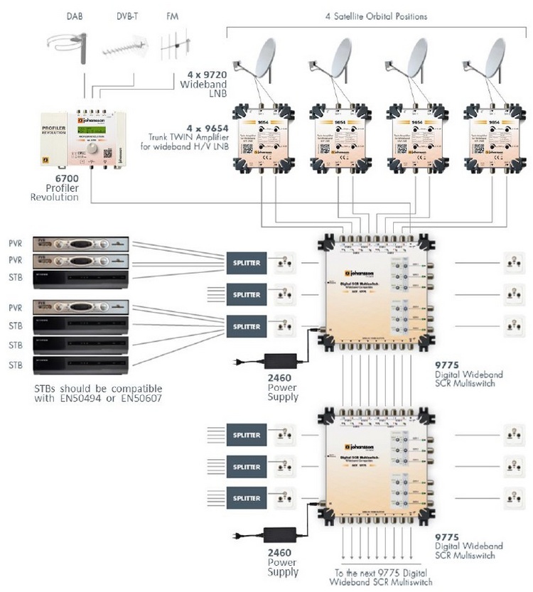 Przykładowa instalacja z wykorzystaniem Multiswitcha Johansson Unicable II: