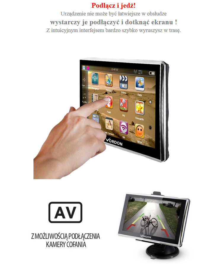 Nawigacja GPS VORDON 5" V2 Europa, 4GB, FM z kamerą
