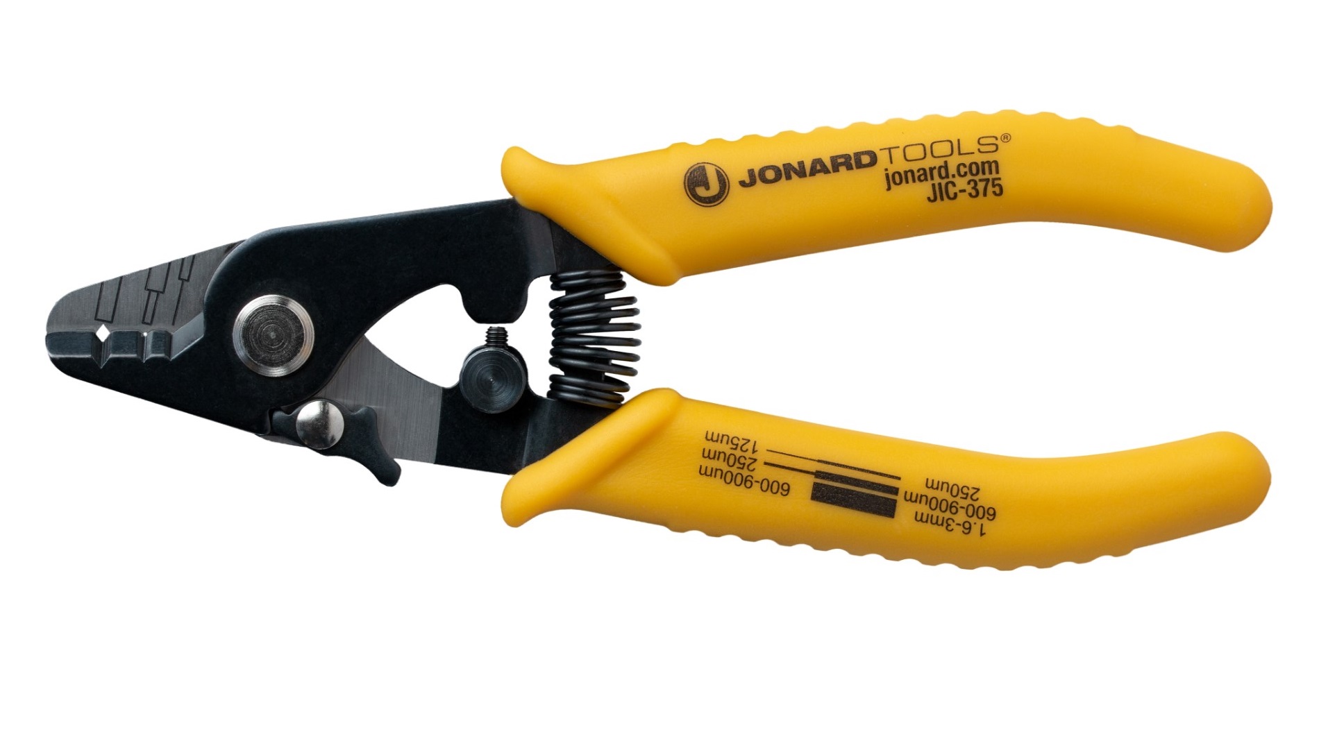Ergonomiczne nożyce do pracy z przewodami światłowodowymi, trójotworowy ściągacz izolacji Jonard Tools JIC-375 wykonuje wszystkie popularne funkcje usuwania izolacji z włókien.