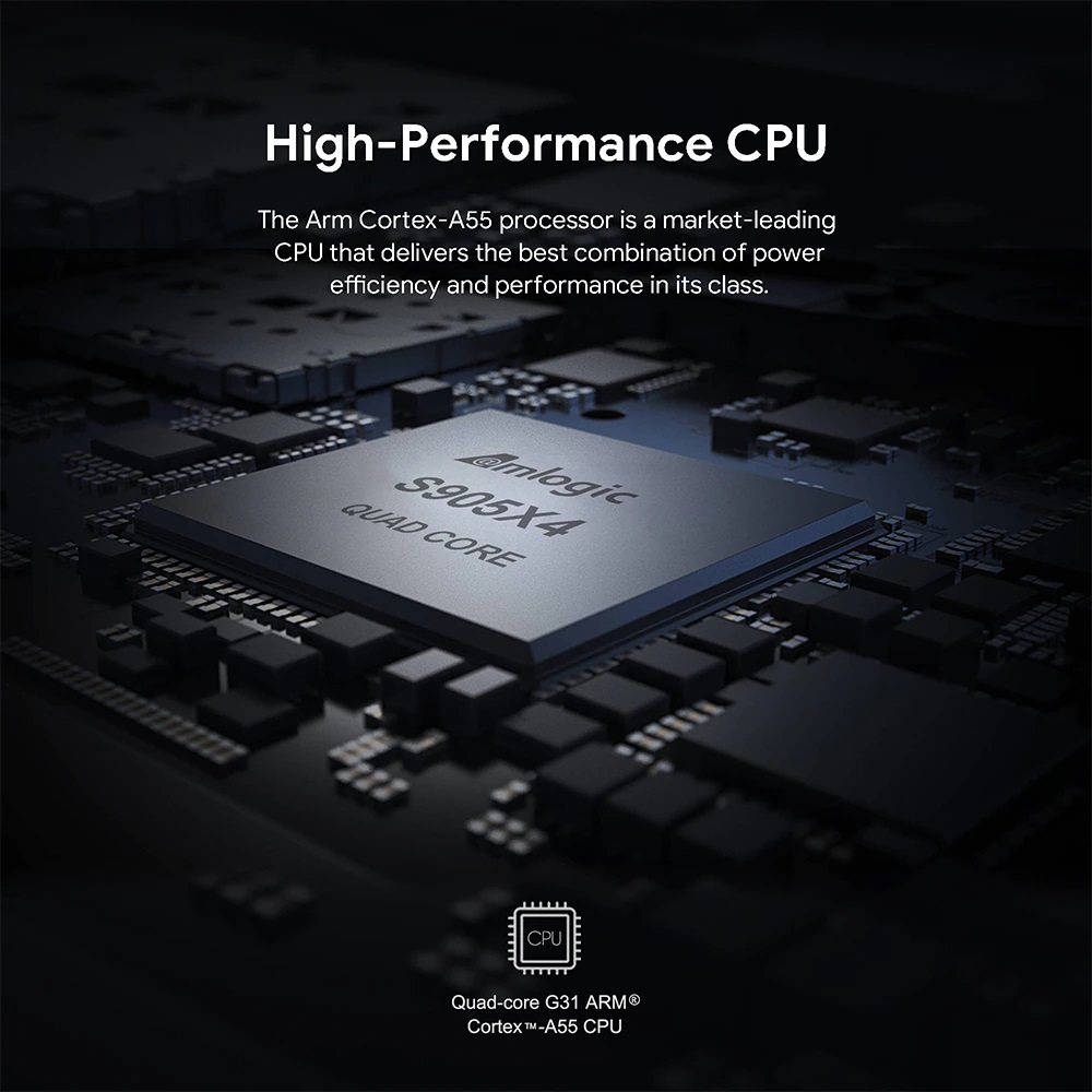 Wysoka wydajność procesora ARM Cortex A55 - dzięki wiodącemu w marketingu procesorowi urządzenie zapewnia najlepszą efektywność energetyczną i wydajność!