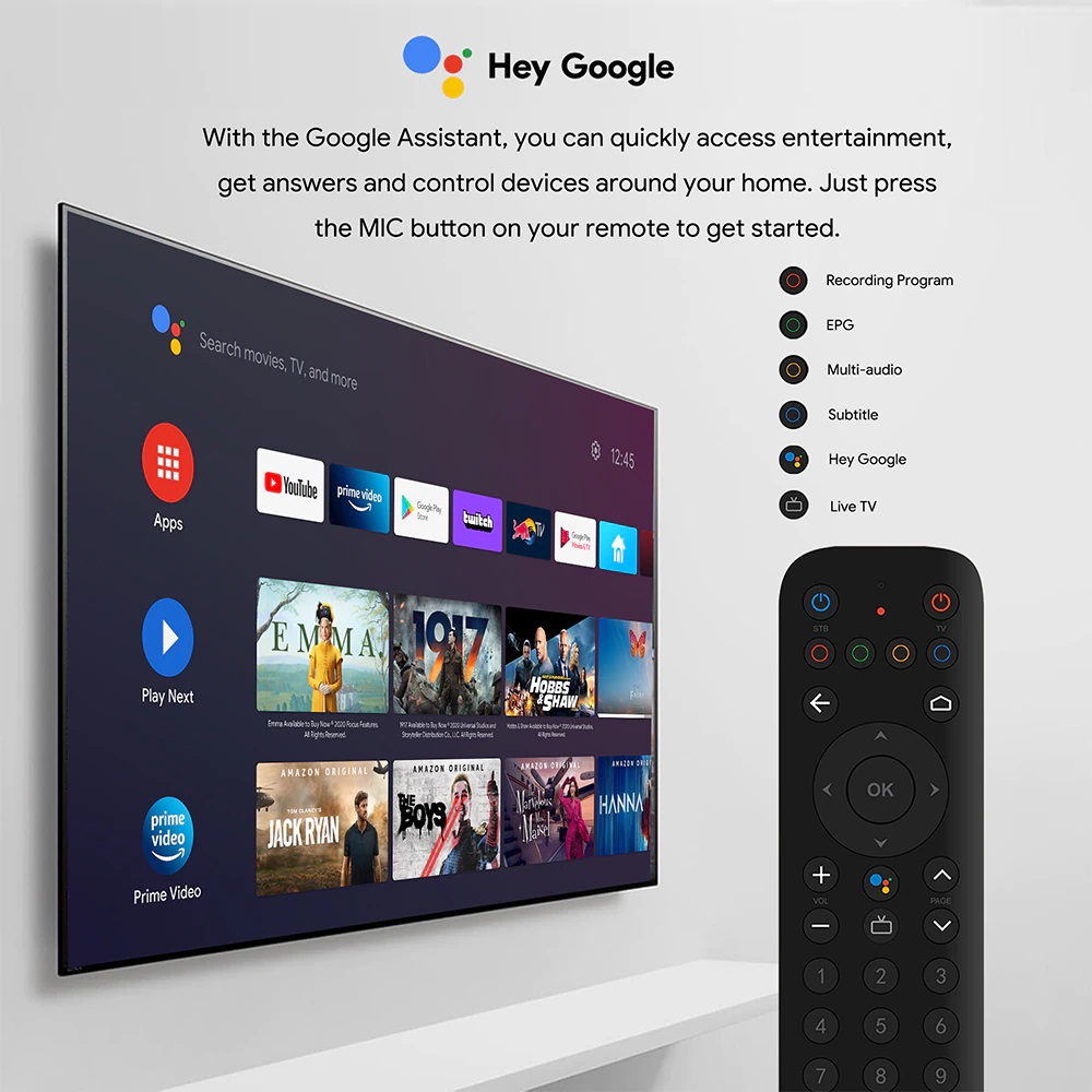 Wsparcie asystent Google - szybkie wyszukiwanie filmów i muzyki. inteligentne sterowanie urządzeniem