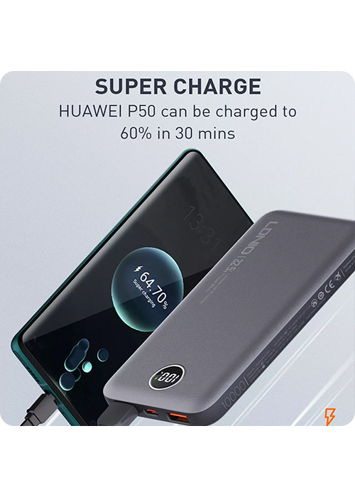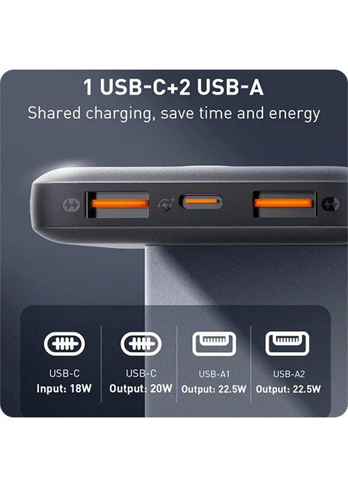 - Standard fast charge i PD- dzięki temu powerbank może bardzo szybko naładować akumulator