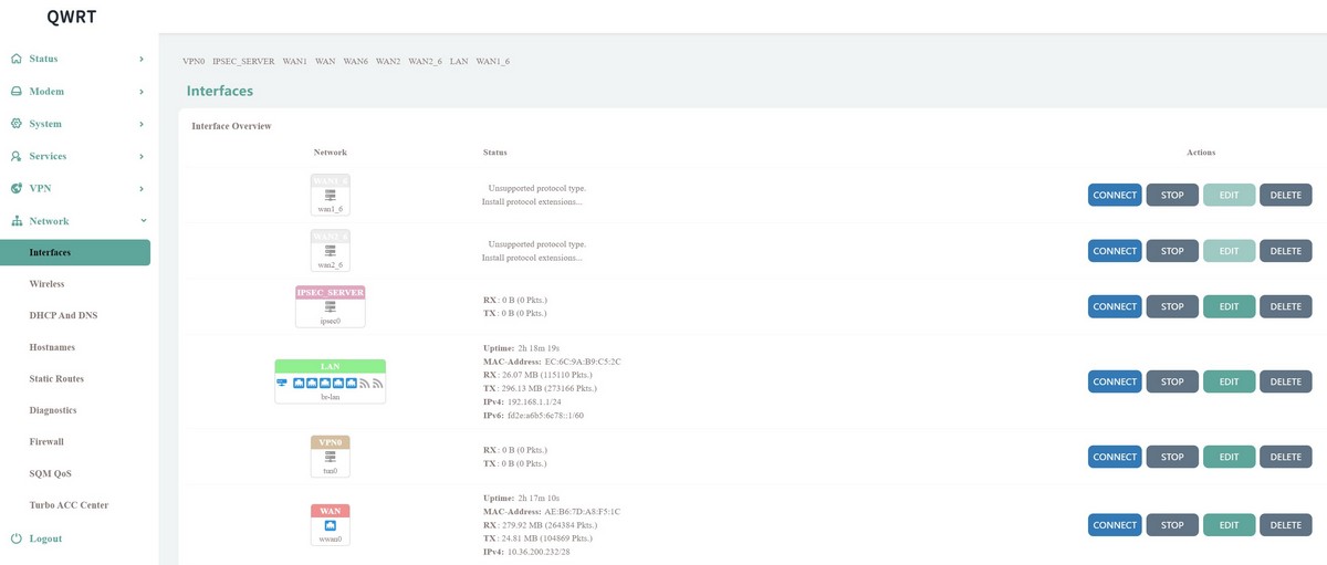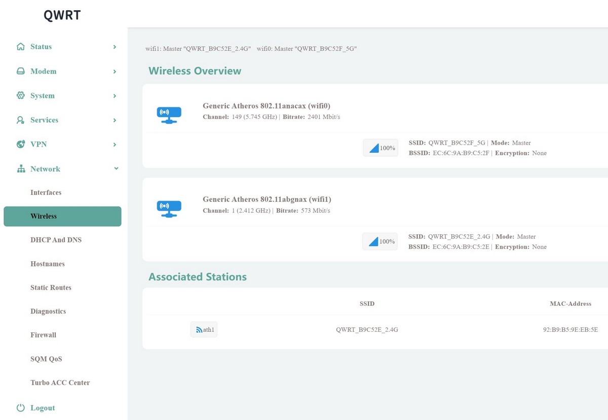 Router ma wgrany odblokowany software QWRT, dlatego dane do logowania są zmienione i inne niż na dolnej części obudowy, podajemy je poniżej: