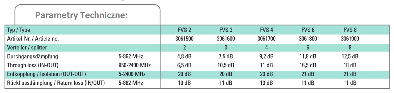 Rozgałęźnik POLYTRON FVS 4 5-2400 MHz charakteryzuje się wysoką jakością wykonania.