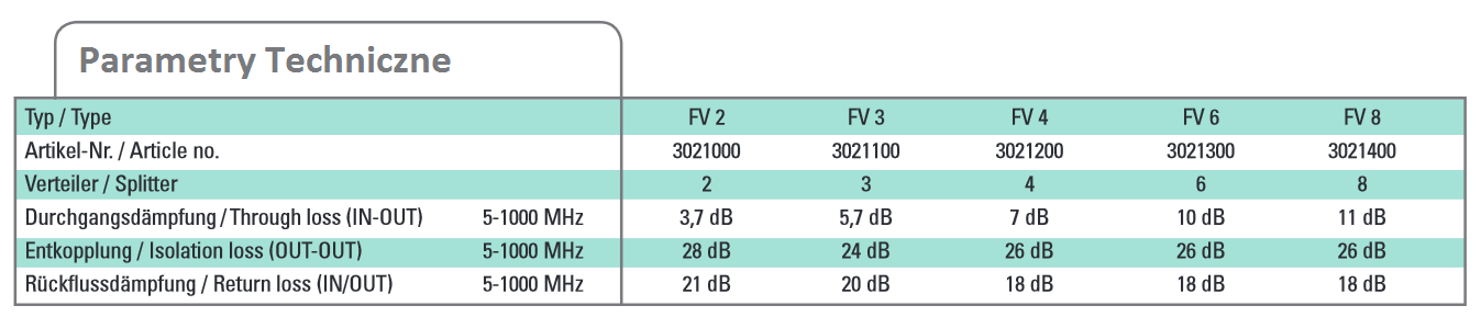 Rozgałęźnik POLYTRON FV8 5-1000 MHz charakteryzuje się wysoką jakością wykonania.