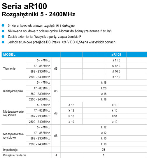 Rozgałęźnik sygnału 1x5 Abovio 5-drożny AR 105 5 - 2400 MHz