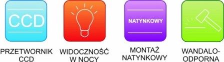• Z kamerą i diodami LED. Przeznaczona do montażu natynkowego. Panel stacji wyposażony jest w podświetlony szyld na nazwiska abonentów, a także podświetlone przyciski wybierania.