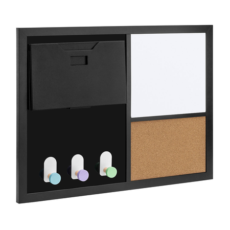 Oto wszechstronna ścienna tablica magnetyczna suchościeralna (600x452 mm) z unikalnymi funkcjami. Wyposażona w gładką powierzchnię ułatwiającą pisanie i czyszczenie, a także korkową powierzchnię do przypinania notatek pinezkami. Dzięki trzem uchwytom oraz praktycznej teczce na dokumenty, ta mała tablica łączy w sobie funkcjonalność z elegancją. Solidne mocowanie magnetyczne, haki do zawieszania drobiazgów oraz praktyczny uchwyt na korespondencję sprawiają, że jest to idealne rozwiązanie do organizacji przestrzeni.