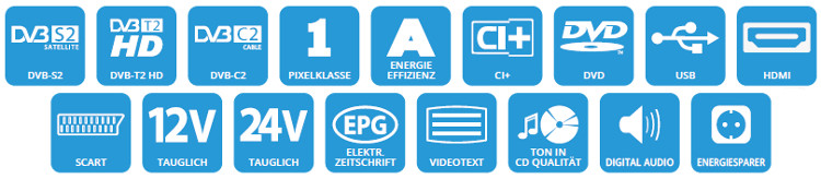 Telewizory zostały wyposażone w Pixel Class 1 oraz zintegrowany odtwarzacz DVD. Największą zaletą jest zainstalowany Triple tuner, slot CI+ oraz porty USB.