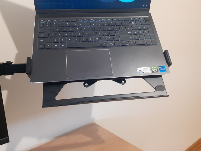 Solidna podstawka pod laptopa. Sam jej ciężar pokazuje, że nie jest to tandeta. Montaż do uchwytu ekspresowy, wszystko perfekcyjnie dopasowane.