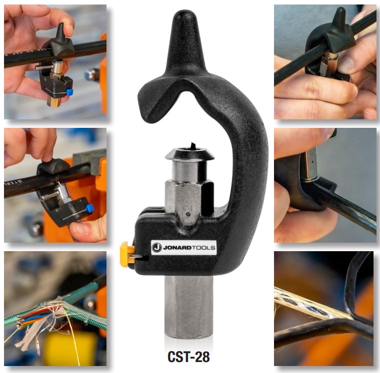 Ergonomicznie zaprojektowany do cięcia i pierścieniowania kabli, rurek plastikowych, ściągacz izolacji CST-28 Jonard Tools jest doskonałym narzędziem do otwierania kabli i kanałów o średnicy od 6 do 28 mm (1/4" do 1 1/8") zwłaszcza w trudno dostępnych miejscach gdzie nie można użyć innych striperów.
