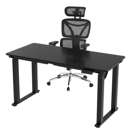 Zestaw do pracy premium: biurko elektryczne (stelaż SPE426B + blat MDF Pure Black) + krzesło ergonomiczne Spacetronik SPC-NERO