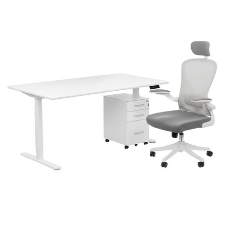 Zestaw do nowoczesnego biura: biurko elektryczne + fotel + szafka biały