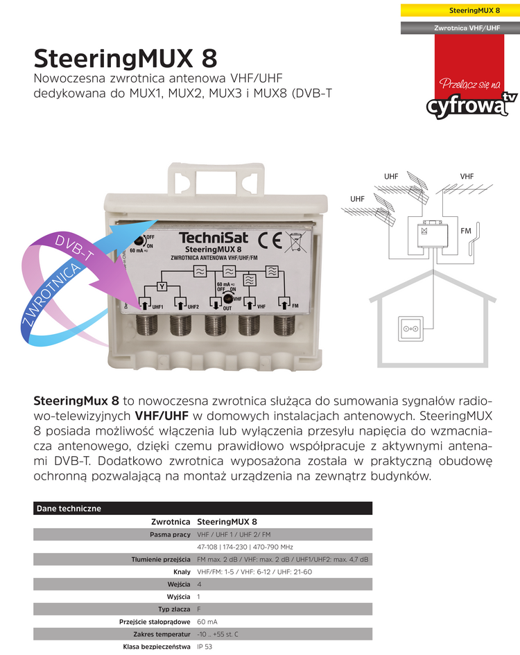 Zwrotnica masztowa Technisat SteeringMUX8 2xUHF+VHF(BIII/DAB)+FM